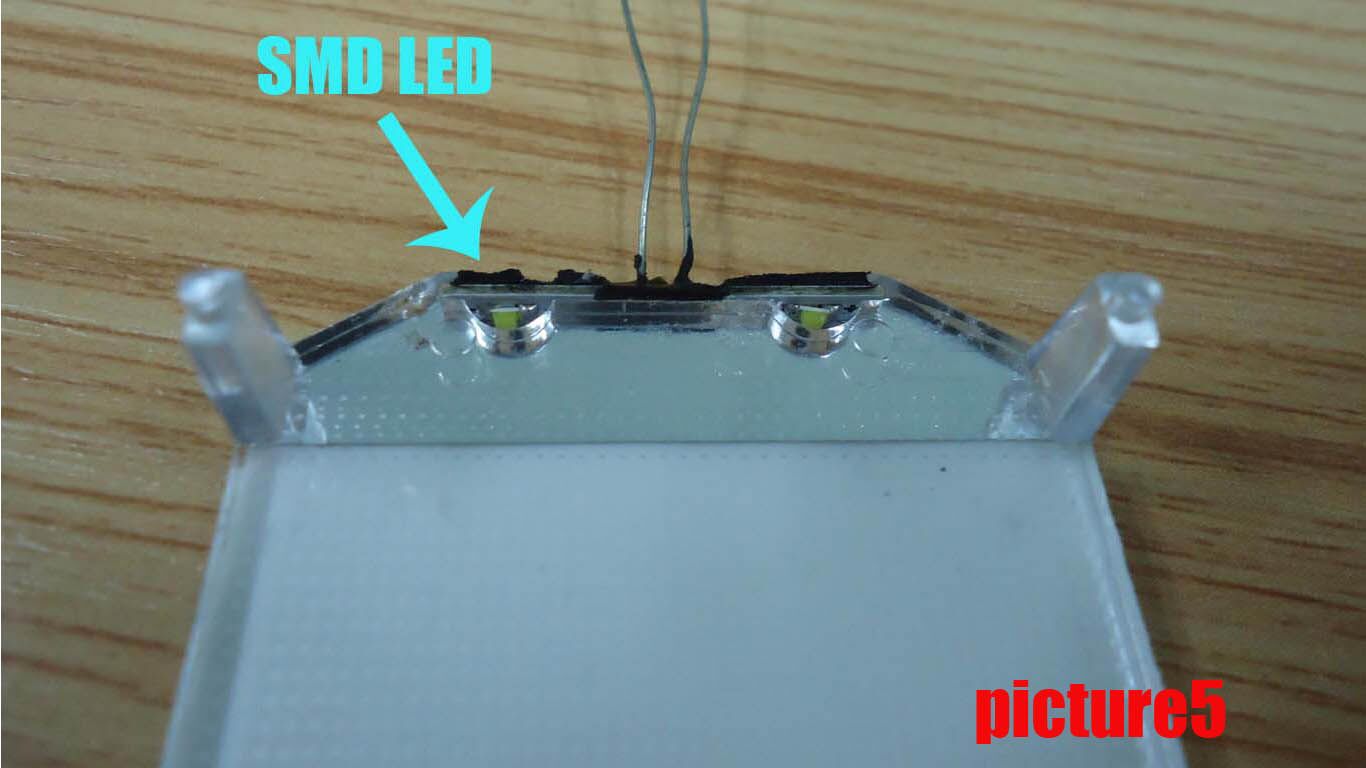 In picture5, edge LED backlight which is composed of injection molding light guide plate and non-printing light guide lattice points adopts SMD LED as the light source.