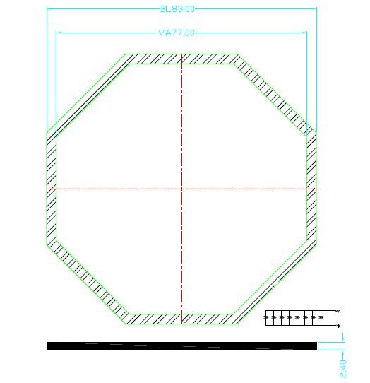Second, we extend it 2.0 mm (1.5 mm at least), see the green line in the picture above, and we get a bigger octagon which is the area of the LCD screen.