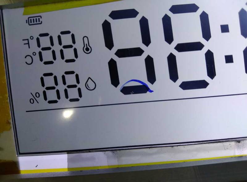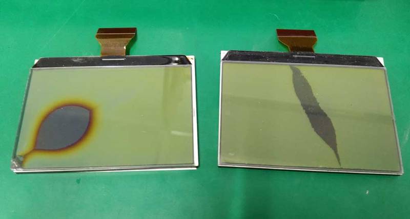 It is called flicker, segment flicker, segment ambiguity, poor contact, shaking, incomplete display, half display, missing segments… The reason is poor conductivity. During electrical testing, the display of a few segments are unstable under normal voltage, and the display content is blurred or not showed. However, when it is tested on the electric tester and the voltage is raised, it can normally display, which is different from “open circuit”.