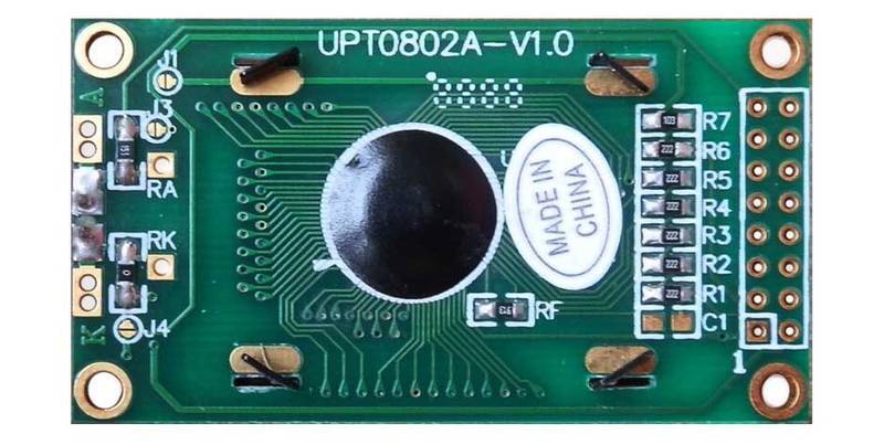 COB is the abbreviation for “Chip On Board”, which is the most common way of processing the drive circuit board of LCM. The IC is attached directly to a specific location on the PCB with a sticky piece of plastic. See the picture below and the IC is under the black plastic. The electrodes of the chip are connected to the corresponding pads of the PCB board with aluminum wire by a soldering machine. And they are covered by a sticky piece of plastic on the surface.
