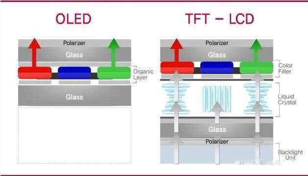 Here is an illustration of LCD and OLED.