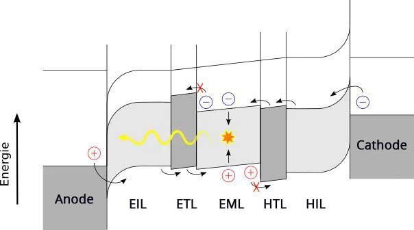 Hole transport layer – This layer consists of molecules of organic material that transport the “hole” from the anode.