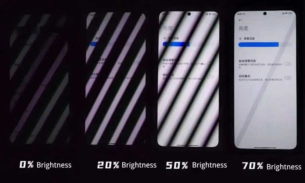 The brightness of OLED screens is controlled by constantly turning on and off of the screen. When the frequency is high enough, it can’t be distinguished by the naked eye (so-called PWM dimming).